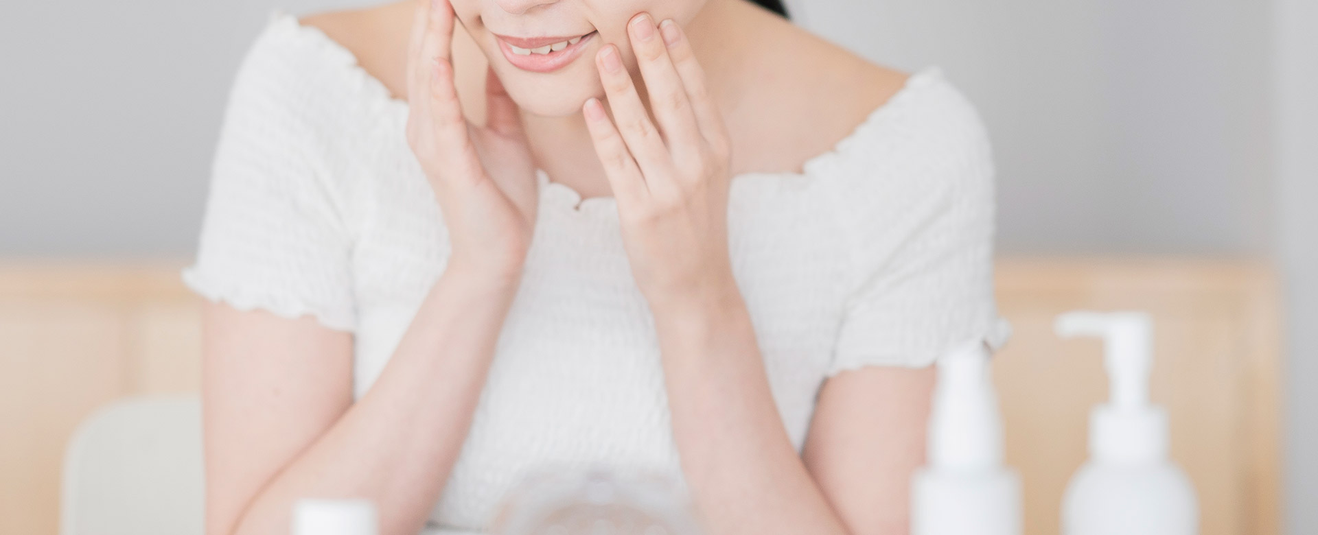 首や顔は皮膚がとても薄いため、水分を溜めにくい傾向があります。首筋に汗をかいてそのままにしておくと汗が蒸発する際に皮脂も奪われてしまい、より乾燥が進んでしまうことも。洗髪後のドライヤーや就寝時にかく汗などもうっかり見過ごしやすいポイントです。お風呂上がりは顔だけでなく、首までしっかりスキンケアをして乾燥を防ぎましょう。